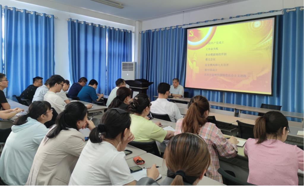 郑宁同志以百年党史中中国共产党的成立、大革命的失败、革命根据地的建立、遵义会议、延安整风和中共七大、新中国的成立、改革开放及社会主义现代化建设七个重要关头为时间主线,阐述了百年党史的精神与思想伟力。从科学理论武装、密切联系群众、严格纪律要求及共同理想信念三个方面阐述了党的成立是中国历史上开天辟地的大事变;大革命的失败,给成立初期的党带来了深刻的反思,使党积累了独立性问题、土地革命问题、军事问题方面的经验;革命根据地的开创,壮大了革命武装力量,使得革命的星星之火,终成燎原之势;遵义会议的召开,实现了党的错误路线向正确路线的转变,是党的历史上生死攸关的转折点;延安整风运动对我们党的建设具有指导意义,为七大的召开奠定了良好基础,增强了我们运用马克思主义的立场、观点、方法解决中国实际问题的自觉性和能力;新中国的成立,实现了民族独立和人民解放,充分调动了全国力量进行社会主义现代化建设,充分显示了社会主义制度的优越性;正是因为中国共产党具备自我革命、自我革新的能力,才推动了我国改革开放的深入及中国特色社会主义道路确立及发展。他强调,学习党史要深刻把握历史规律,深刻理解中国共产党为什么“能”,做中国共产党的坚定追随者和坚决拥护者;深刻理解马克思主义为什么“行”,做马克思主义的坚定信仰者和忠实践行者;深刻理解中国特色社会主义为什么“好”,做中国特色社会主义事业的积极推动者和担当实干者。