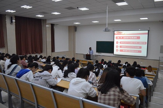 党课伊始,李文婷紧紧围绕“世界正处于大发展、大变革、大调整时期;坚持独立自主和平外交政策;推动建立新型国际关系”三个方面,诠释了中国如何坚持走和平发展的道路,指出和平发展仍是当今时代的主题。随后,李文婷向学生们阐述了“构建人类命运共同体思想的内涵、促进‘一带一路’国际合作以及共商共建人类命运共同体”的深远意义,从当代中国与世界的关系,反映了实现中华民族伟大复兴中国梦的迫切需要。最后,李文婷向学生们播放大国外交相关视频,呼吁学生们积极了解中国外交政策,通过各种渠道关注中国基本国情。