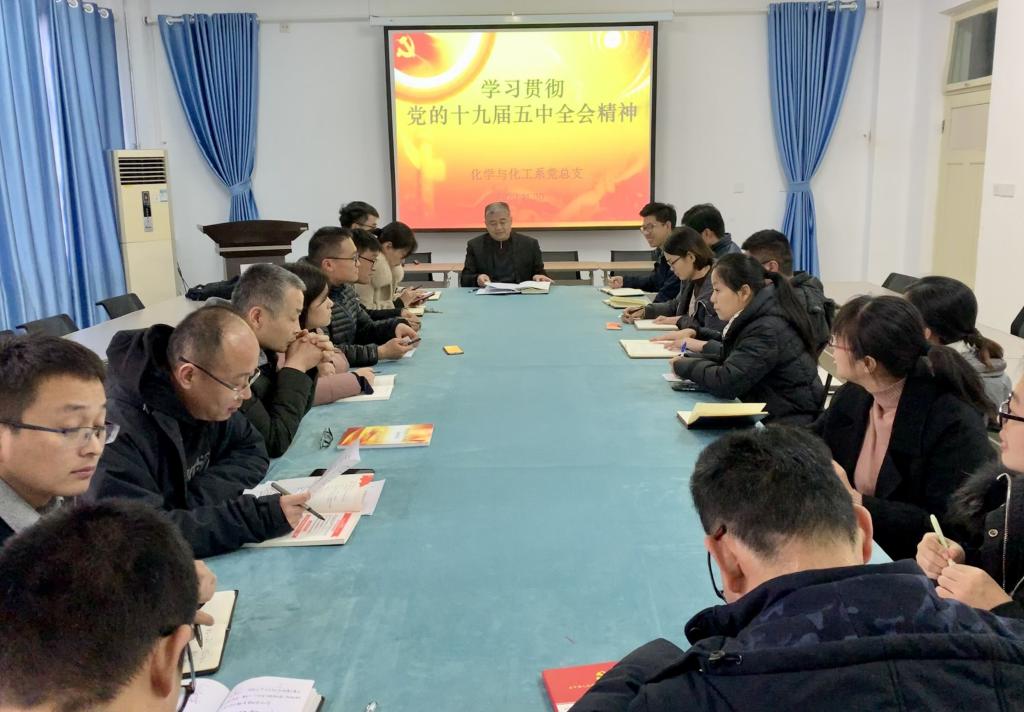 为深入学习贯彻党的十九届五中全会精神,11月30日下午,化学与化工系组织开展党的十九届五中全会精神宣讲活动。系党总支书记郑宁作宣讲报告,系全体教工党员参加活动。