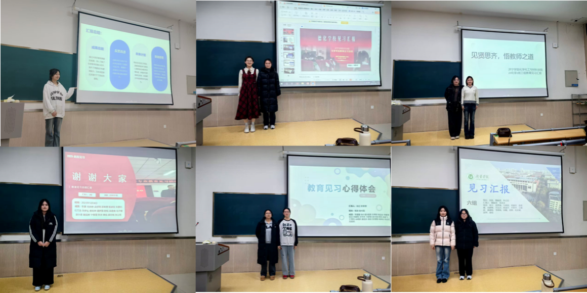 12月6-7日,学生小组讨论、准备见习汇报,8日学院及时召开见习总结讨论会,学生以小组为单位进行了见习总结汇报。同学们针对见习中听课、班主任培训以及观摩班会等活动中的所见、所闻、所感、所思进行了分享与交流。同学们纷纷表示本次见习收获颇丰,对真实的初中化学课堂教学和班级管理有了更明确的认识。