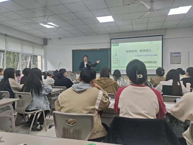 王海军老师从2022版义务教育化学课程标准倡导的教育理念入手,结合具体的教学案例,从教学目标、教学方法、教学设计、教学模式等几个方面生动展示了提高学生学习兴趣、提升学生核心素养的多种教学方法和教学活动设计。讲座期间,王老师和学生不断进行互动交流,学生积极参与。