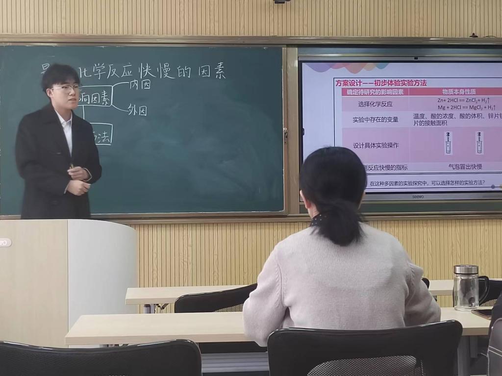 参赛选手准备充分,在教学内容设计、教学方法使用、课堂节奏掌控、PPT制作、板书设计等方面精彩不断、亮点纷呈,充分展示出身为师范生良好的基本素质和从业技能。评委们对参赛选手从理论到实践、从基本素养到教学技能等方面进行了精准点评与悉心指导。经过激烈的角逐,王星雨、张炳琳、张玉滢、王文琦获一等奖,申奥等四名同学获二等奖,胡美阳等5名同学获三等奖。