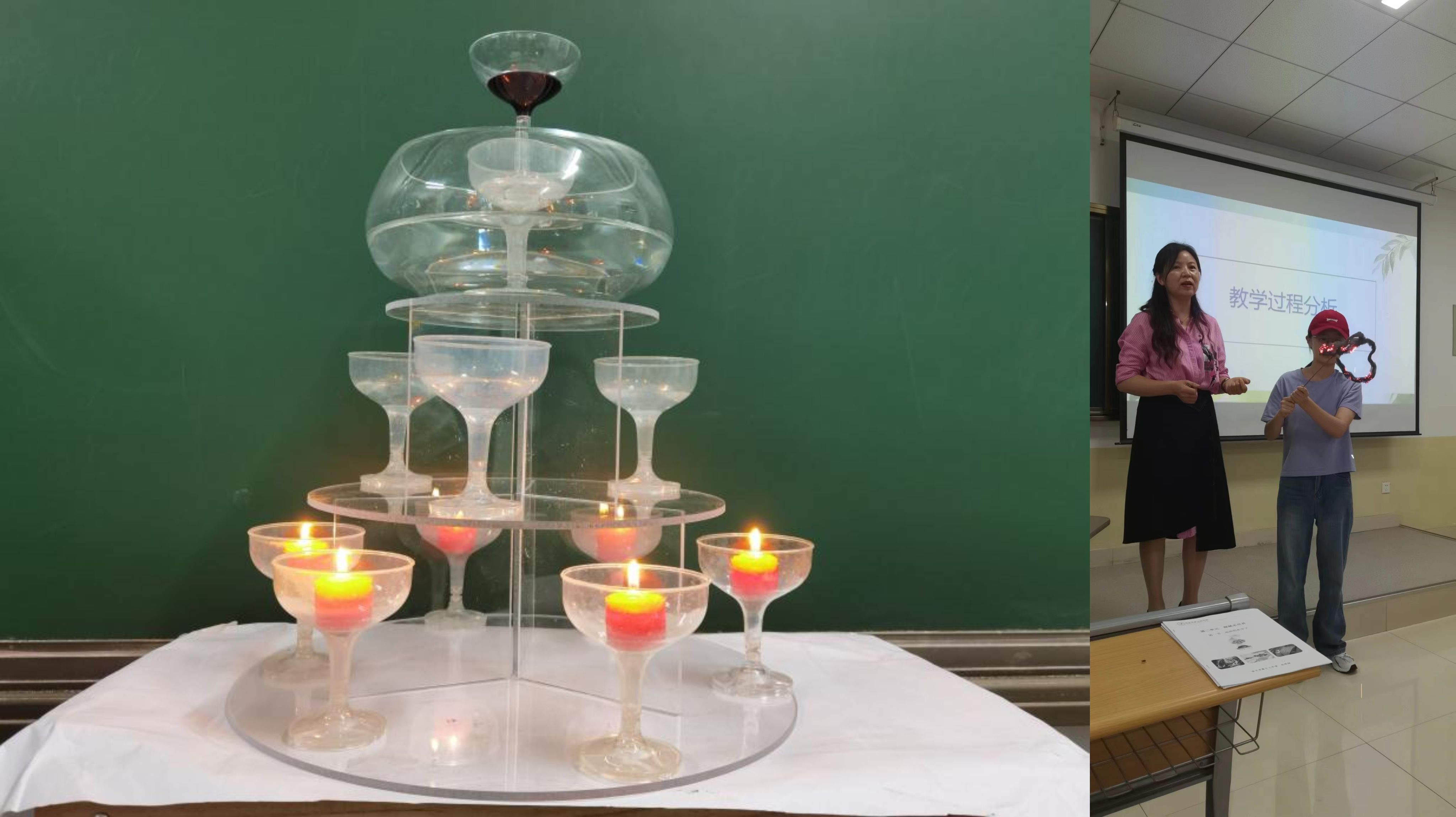 过程中,运用常见的生活用品现场演示了多个有趣的创新实验,大大激发了同学们的兴趣,惊叹于中学化学实验教学的魅力;以“独研教学设计”增加学生的参与性,强化了学生素养导向教学设计理念的认知。