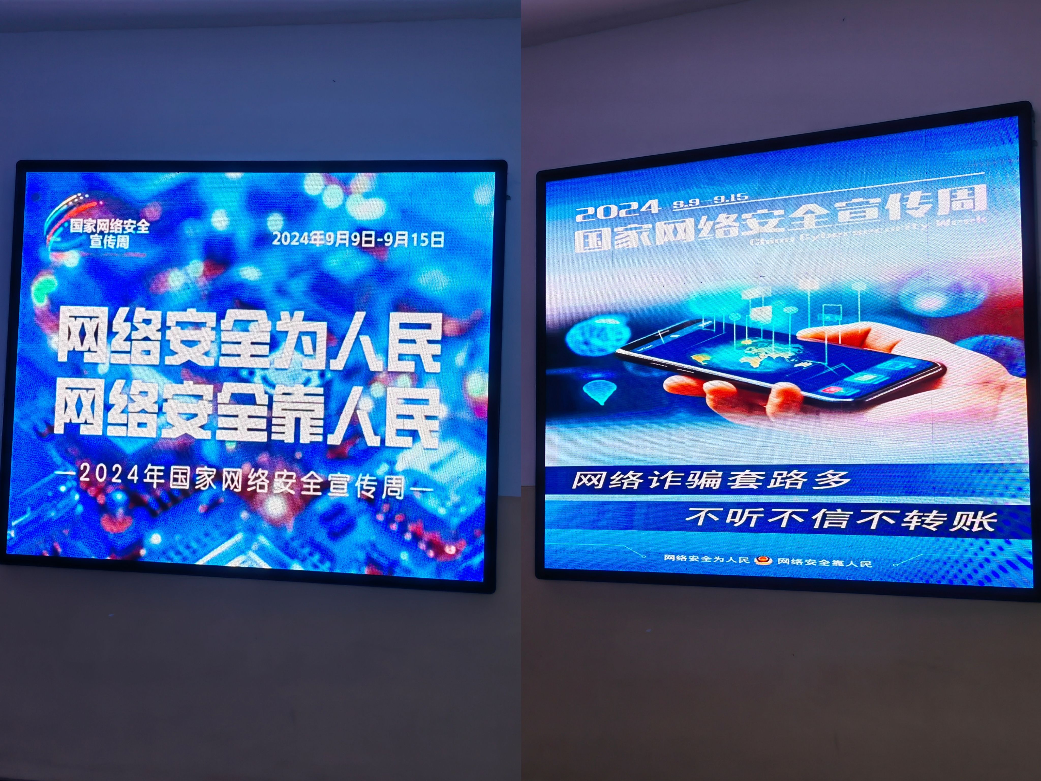 学院高度重视网络安全教育工作,在学院电子宣传屏滚动播放网络安全教育和网络强国知识,营造网络安全人人有责、个个参与,共同守护清朗网络空间的氛围,让共同维护网络安全理念深入人心。