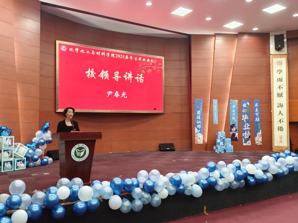 尹春光在典礼上讲话,回顾学校近几年的发展和同学们四年的成长历程,为毕业生们送上祝福,她希望毕业生保持对学习的热情和好奇心,不断探索未知,提升自我;牢记社会责任,勇于担当作为,为社会发展贡献力量;保持奋斗姿态与良好心态,心怀感恩,热爱生活。