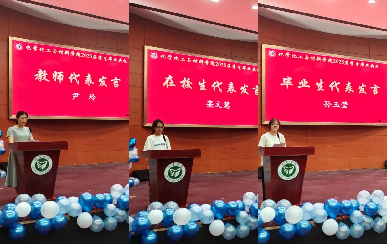 教师代表尹玲教授为毕业生送上深情祝福,作为班主任,她满是骄傲与不舍。她感慨地看着同学们成长成才,坚信大家未来定能绽放光彩。毕业生代表孙玉莹深情回顾大学时光,感恩老师们的悉心栽培如山般厚重。她表示,会带着母校的嘱托勇毅前行,无惧未来挑战,以实际行动回报师恩。在校生代表栾文慧向即将毕业的学长学姐致以诚挚祝贺,她将以优秀毕业生为榜样,接续奋斗,用优异成绩续写母校荣光。
