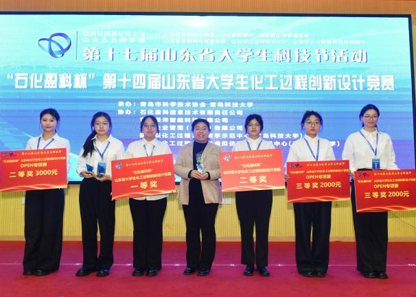 11月9日,“石化盈科杯”第十四届山东省大学生化工过程创新设计竞赛在青岛科技大学圆满落幕。作为第十七届山东省大学生科技节核心赛事之一,大赛吸引了全省多所高校的参赛队伍同台竞技。伟德victor1946学子凭借扎实的专业功底、创新的设计方案和出色的现场表现,在众多参赛队伍中脱颖而出,斩获多个奖项:“净液”先锋队(王玙璠、焦晓晴、孙心蕊)荣获一等奖,萃取先锋队(陈孟影、吕忠珂、胡雅杰)荣获二等奖,另有八队获得三等奖。在今年新增OPEN专项赛道中,羰心协力队(刘雯欣、徐真情、胡文溆)荣获二等奖、“净液”先锋队(王玙璠、焦晓晴、孙心蕊)与从容应队(王嘉乐、施洁、刘玉凤)荣获三等奖。