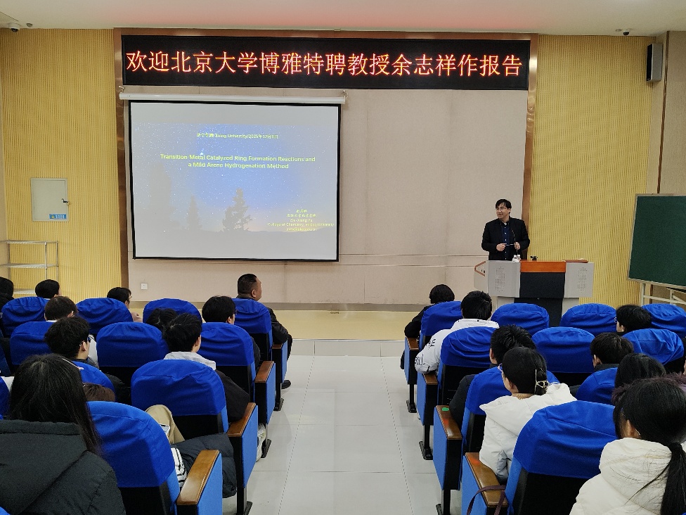 报告会上,余志祥教授与我校教师和学生互动交流,与会师生就反应条件的筛选、质子迁移模型、芳环的氢化反应应用等问题与余志祥教授展开讨论。针对师生提出的各类学术问题,余志祥教授逐一进行了细致深入的回应,并结合自身科研实践分享了宝贵经验。