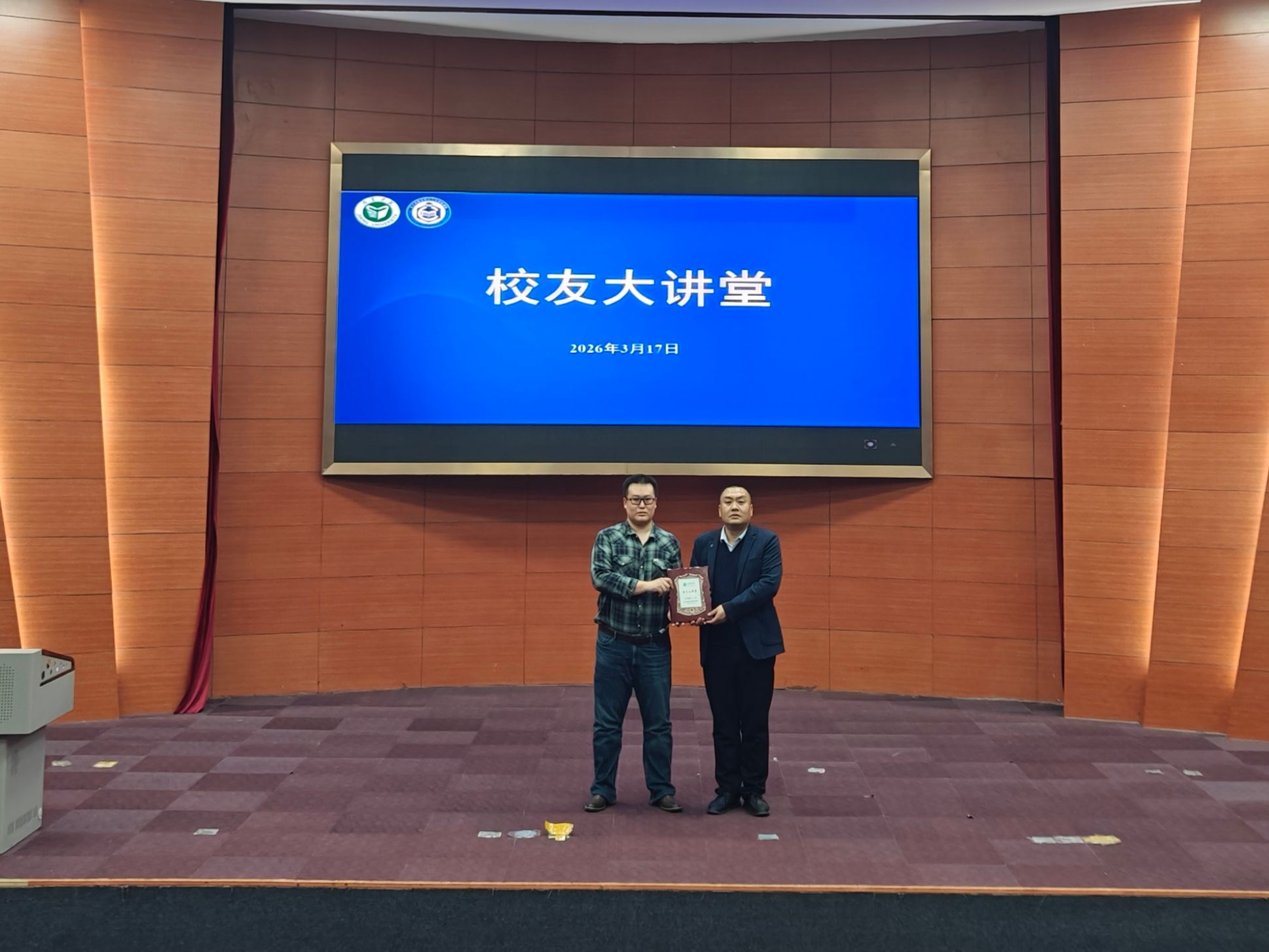 刘涛代表学院为王路颁发校友铭牌,感谢他以自身奋斗历程,为在校学子树立了生动的榜样,为学院优良学风的传承注入了蓬勃力量。他寄语在场同学,要以优秀校友为镜,坚定理想信念,厚植专业情怀,勇于探索未知,不断追求卓越。