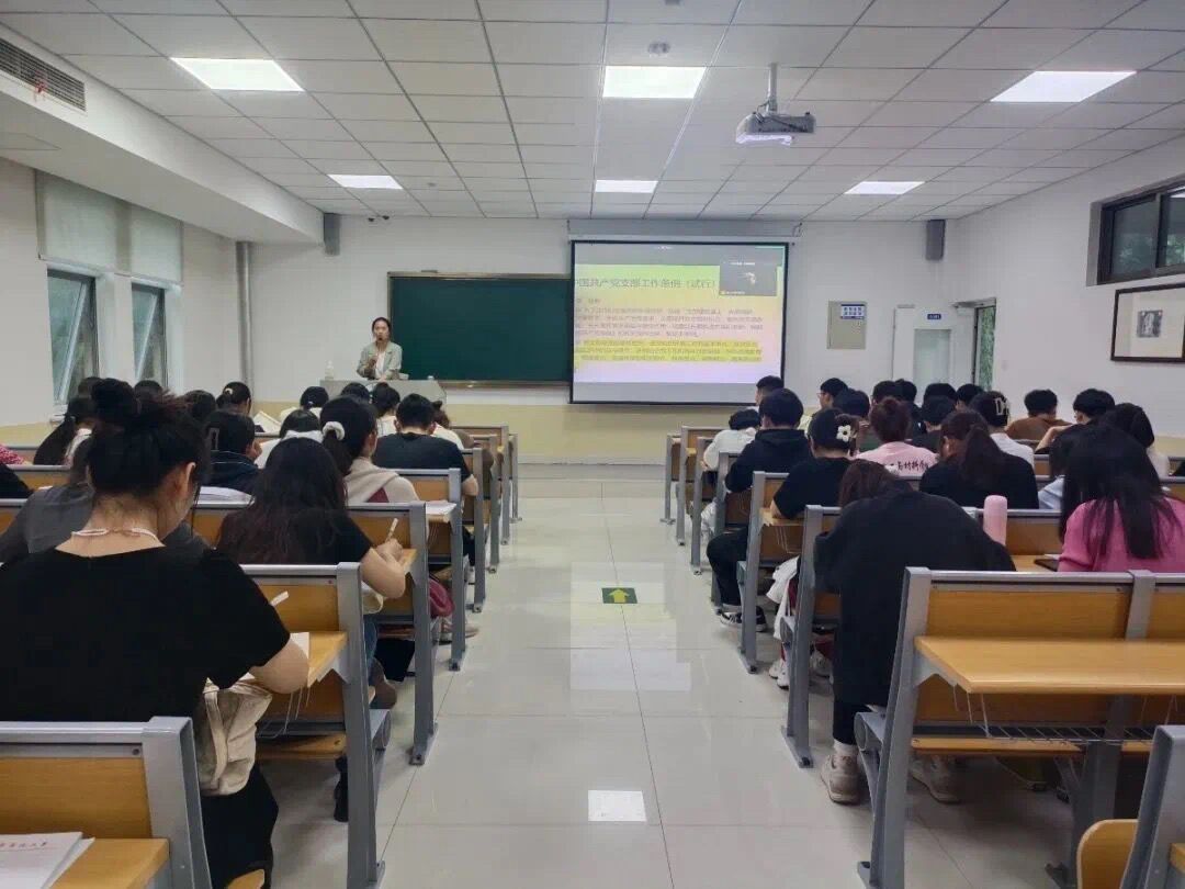 2023年5月12日晚六点半,伟德victor1946在9号楼A301、A302教室采取线上线下相结合的方式,开展了以“学习《中国共产党支部工作条例(试行)》”为主题的第四十二期入党积极分子、第三十一期党员发展对象、第十五期预备党员培训,此次培训课由伟德victor1946辅导员胡从修老师主讲,学院各级入党积极分子、党员发展对象、预备党员参加此次培训。