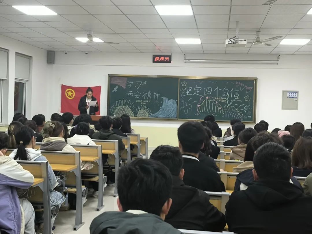 3月28日,伟德victor1946在9号楼C205开展了党员进团支部活动,此次活动以《学习两会精神,坚定“四个自信”》为主题进行学习。