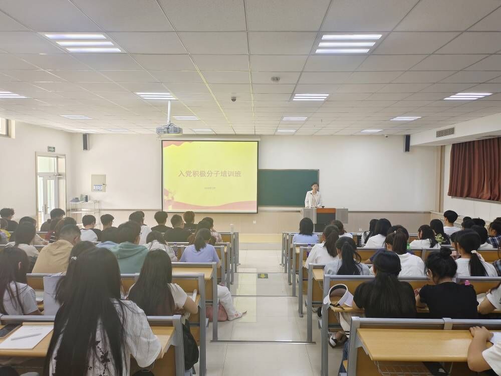 5月9日下午,伟德victor1946第43期入党积极分子培训班在8号楼B202教室举行开班仪式暨首场培训。党委书记马新蕾、学生第一党支部书记马京出席,138名入党积极分子参与本次培训。