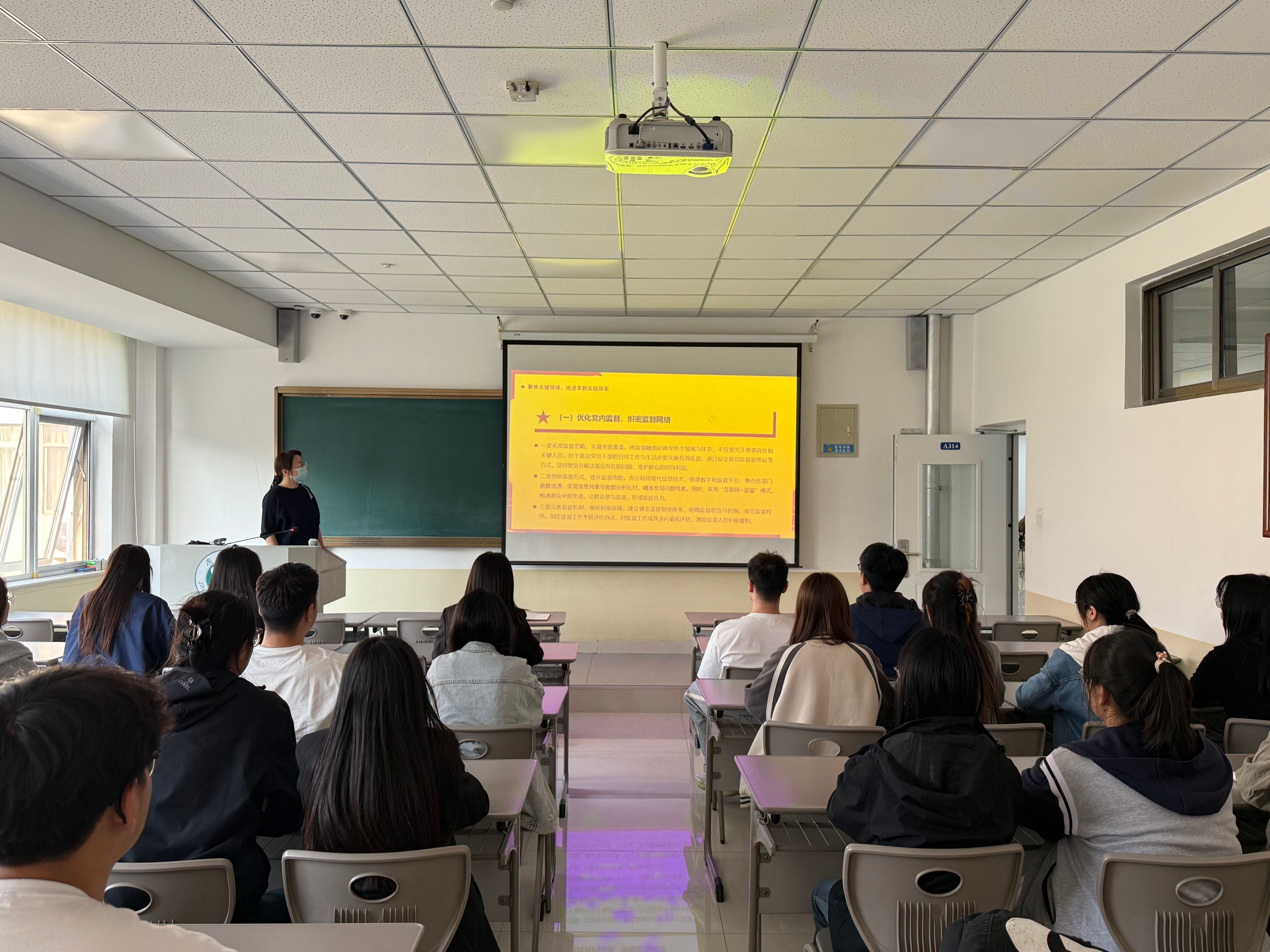 活动中,支部书记马道远以“新时代全面从严治党的理论与实践”为主题讲授专题党课。随后,全体成员集中观看了《永远吹冲锋号》廉政教育纪录片片段。在交流研讨环节,支部围绕“学生教育管理存在的问题与对策” 展开热烈讨论。党员们结合自身实际,对标 “政治素质、纪律作风、作用发挥” 等方面查摆不足,并提出改进方向。