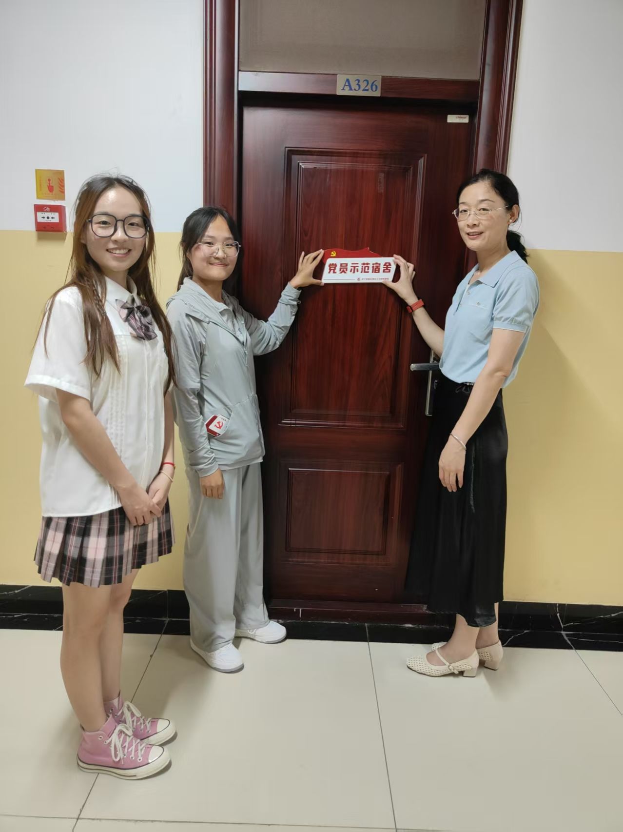 仪式结束后,师生一同前往新8号楼宿舍进行现场挂牌,勉励获奖学生珍惜荣誉,以身作则,带动更多同学共同进步。