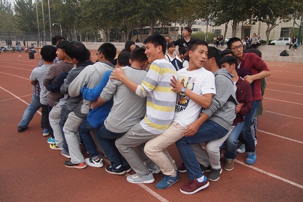 趣味运动会奏响了运动会的前奏。此次趣味运动会共有五个运动项目:“同舟共济”,“二龙戏珠”,“男来女往”,“奥运五环”以及拔河。参赛的同学们在赛场上为了胜利而拼搏,场下的同学们也传来一阵阵鼓励的呐喊声和胜利的欢呼声。每场比赛都需要同学们之间的默契配合,同时也是为运动会预热。