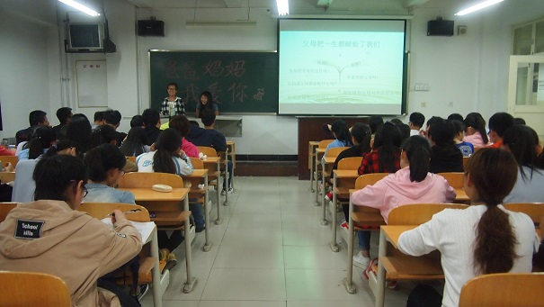 活动首先由母亲节、父亲节的来历开始讲起,加深了同学们对这些节日的理解。随后又带领大家观看了关于亲情的视频,讲述了父母对子女无私的爱,看到了父母为子女的成长付出的艰辛。在座的同学时而探讨,时而深思,时而感动。本次活动加深了对亲情的理解,同学们纷纷表示要加倍的孝敬、关爱父母。
