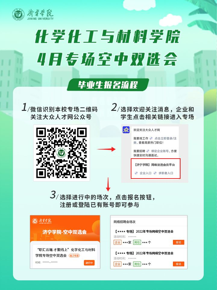 为贯彻落实党中央、国务院“稳就业”、“保就业”决策部署,根据山东省人社厅和教育厅对高校毕业生就业工作的相关要求,同时为做好学校疫情防控常态化条件下校园招聘工作,伟德victor1946联合大众人才网就业平台,于4月份组织持续性、常态化的就业双选会系列活动。