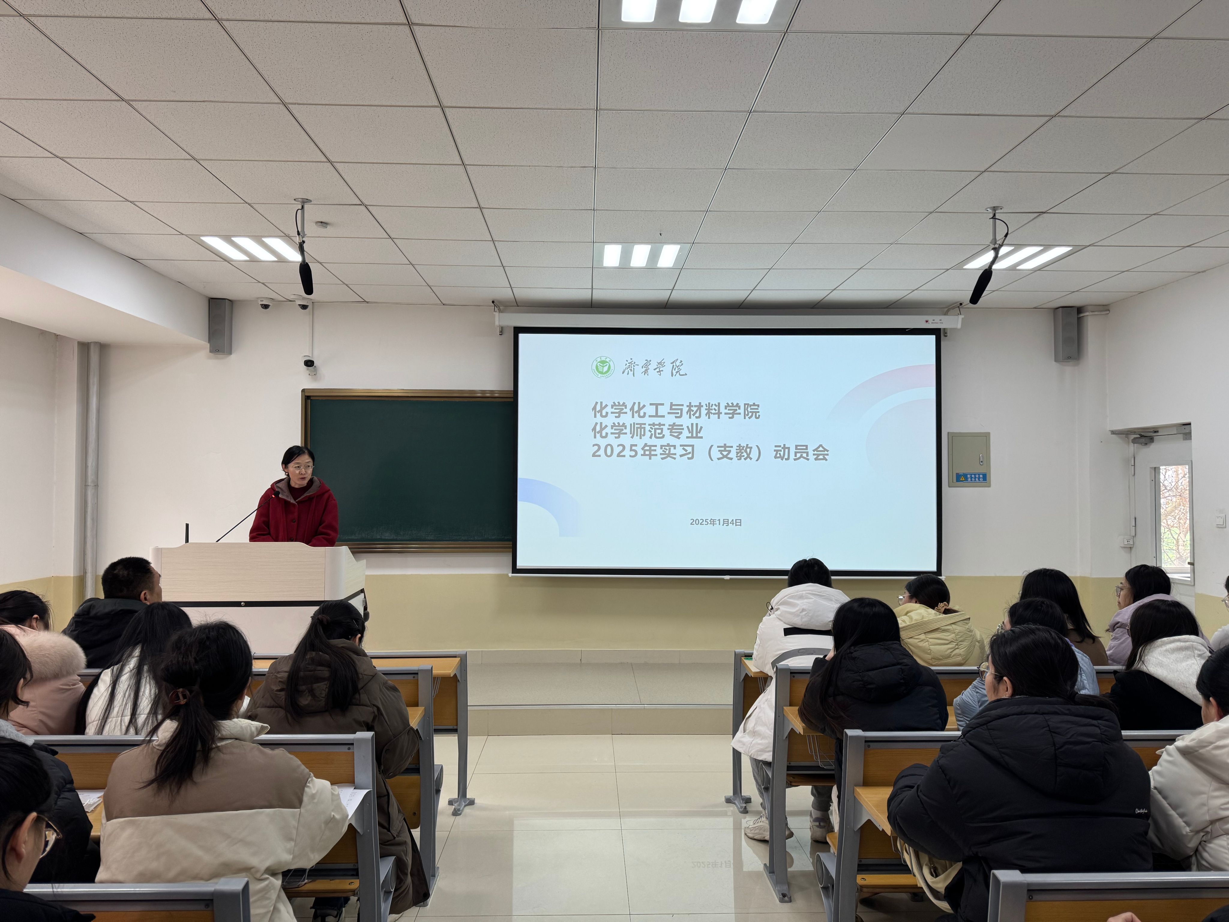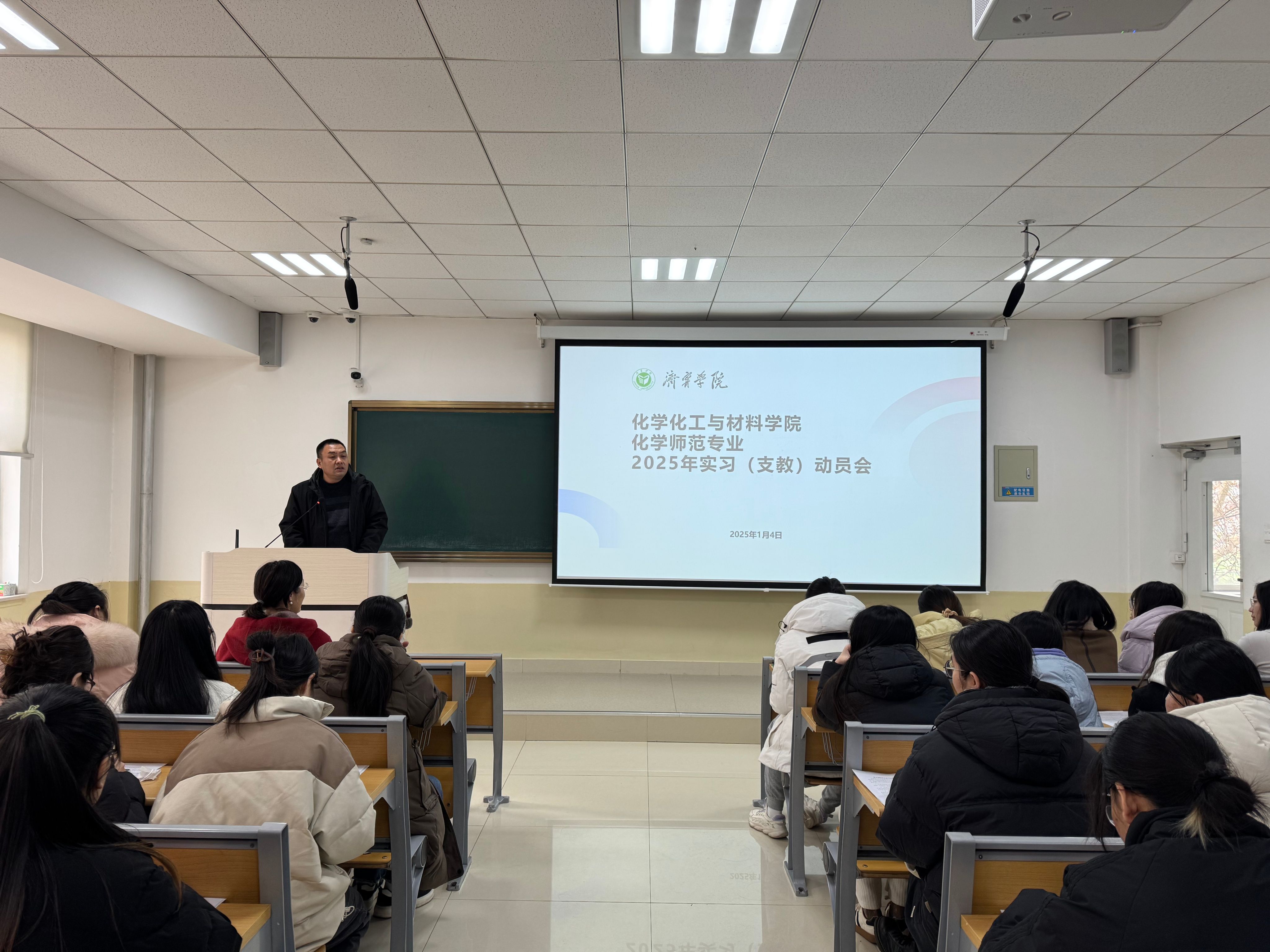 1月4日下午,伟德victor1946在9A201教室开展化学师范专业2025年实习支教动员会。学院党委书记马新蕾、院长刘涛、化学师范专业负责人郑晓雯出席动员会。2022级化学师范专业全体同学参加会议。辅导员张正弛主持。
