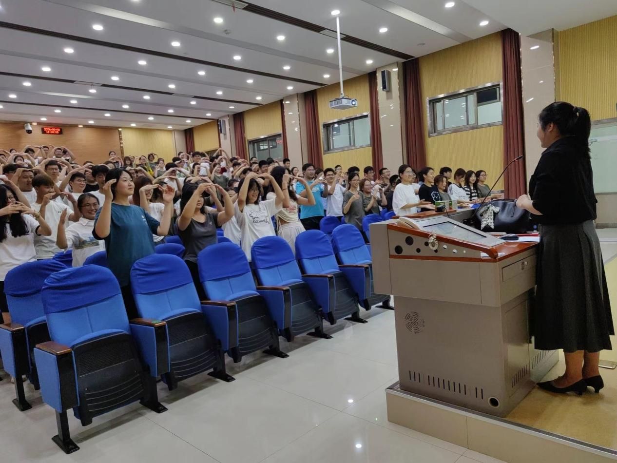 胡老师以“大学生活 从’心’开始”为主题,围绕大学新生进入大学后会出现的生活与心理变化,以及如何适应和调整这些变化展开了深入的讲解。讲座开始,胡老师通过组织一个有趣的反口令动作集体游戏,迅速吸引了同学们的注意力,活跃了现场气氛。随后,她细致分析了新生即将面临的大学生活与中学生活的不同之处,针对这些变化,胡老师向新生们传授了情绪心理舒缓的方法,如深呼吸、放松训练、积极暗示等,帮助他们及时调整自己的心态,缓解压力。她还鼓励新生们要勇敢面对挑战,积极适应大学的新环境,珍惜大学时光,努力提升自己。
