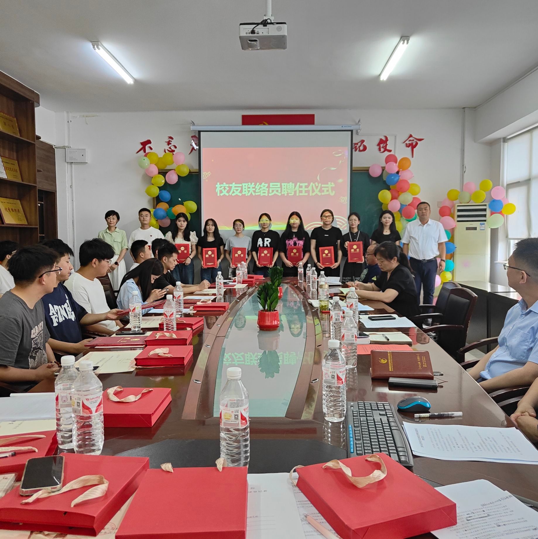 副院长郑逸群宣读了《关于聘任王国瑞等同学任2024届伟德victor1946校友联络员的决定》。党委书记马新蕾、院长刘涛为校友联络员颁发聘书。